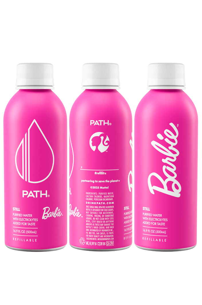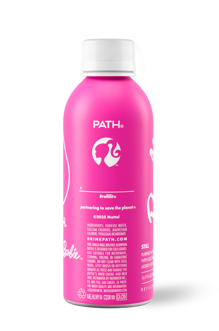 She’s Baaaaack and ready to help you sparkle all day long. Hydrate in true Barbie style with ultra-purified, reverse osmosis filtered water packaged in a sleek pink, refillable Barbie designed bottle. Lightweight and made to hydrate, you’ll be saying, “Come on, Barbie, let’s go refill” with every sip.